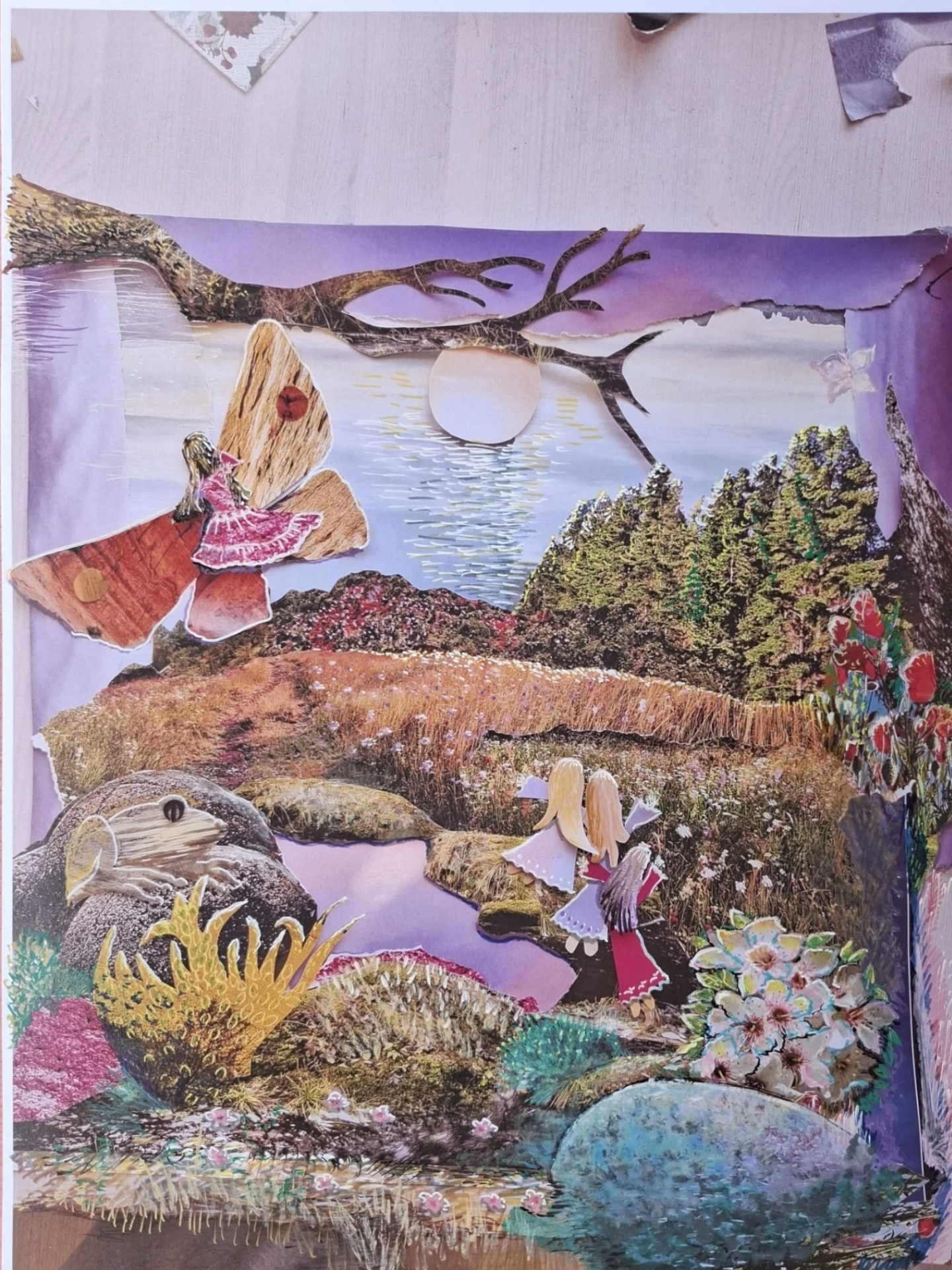 Koláž jako ilustrace. Knihy jsou nepřebernou studnicí nejrůznějších technik ilustrací. Je stále těžší najít něco nového. Miluji koláže. Sbírám staré kalendáře, obaly od ledasčeho, časopisy s hezkými obrázky. Teď zrovna jedu v technice, kterou jsem nazvala ,dokreslená koláž'.